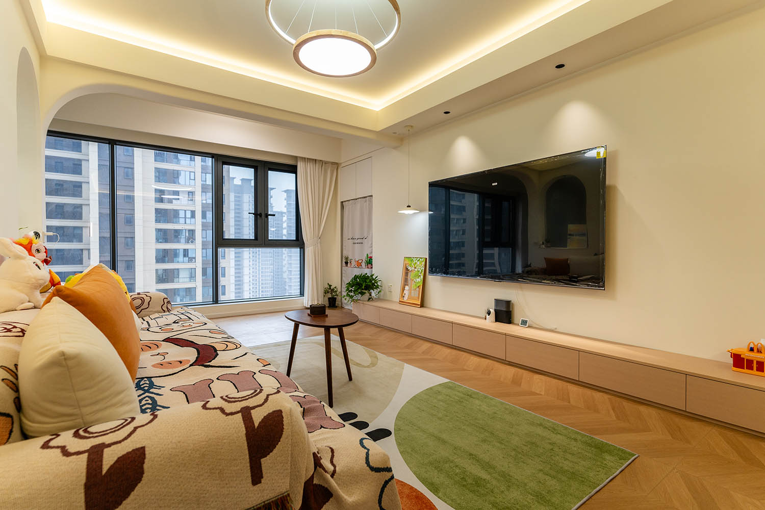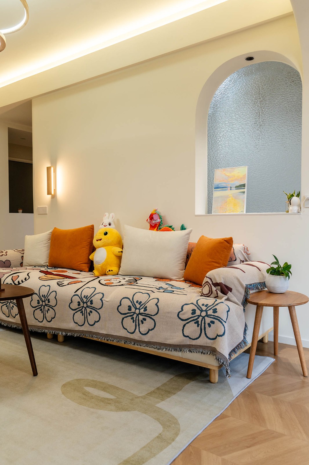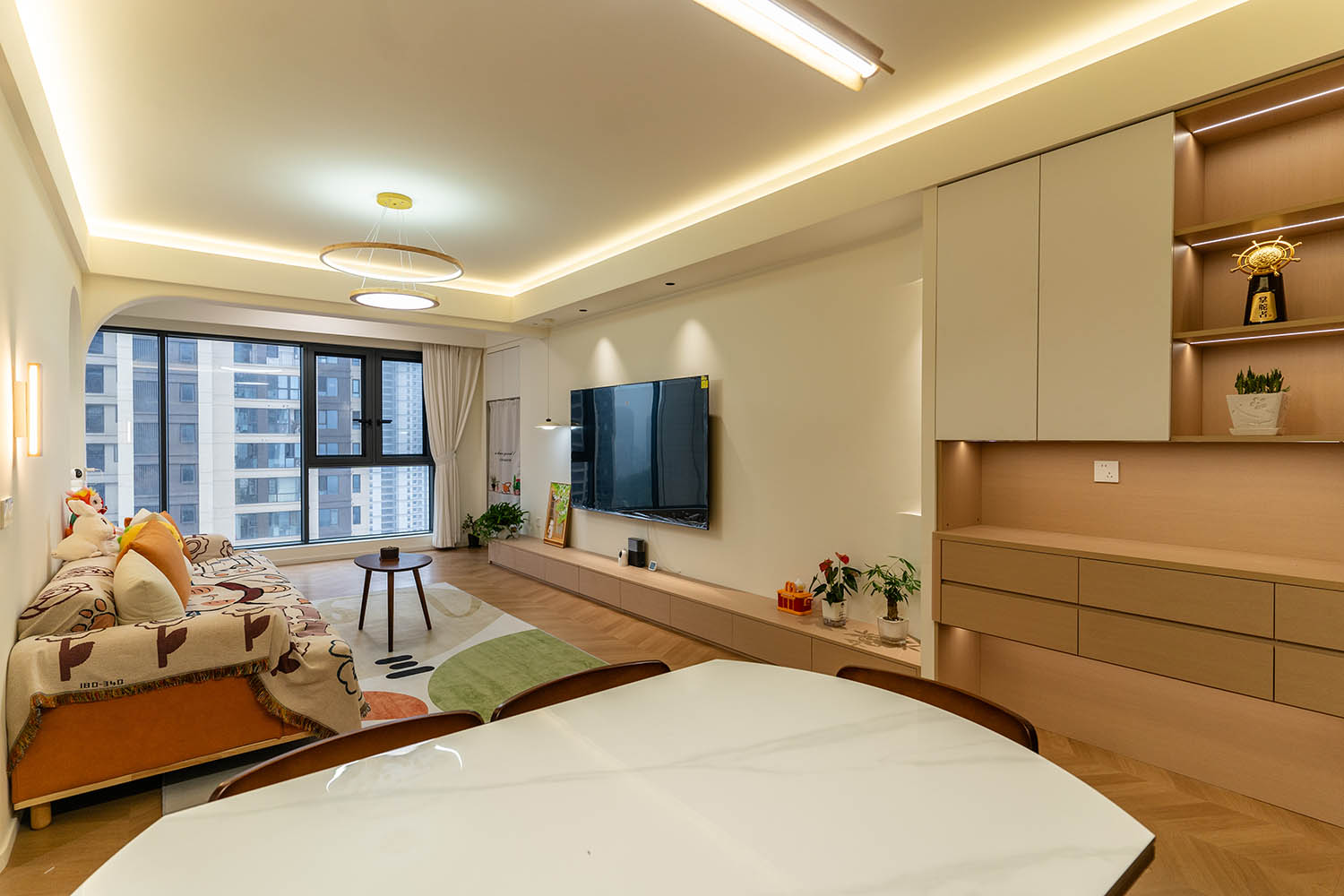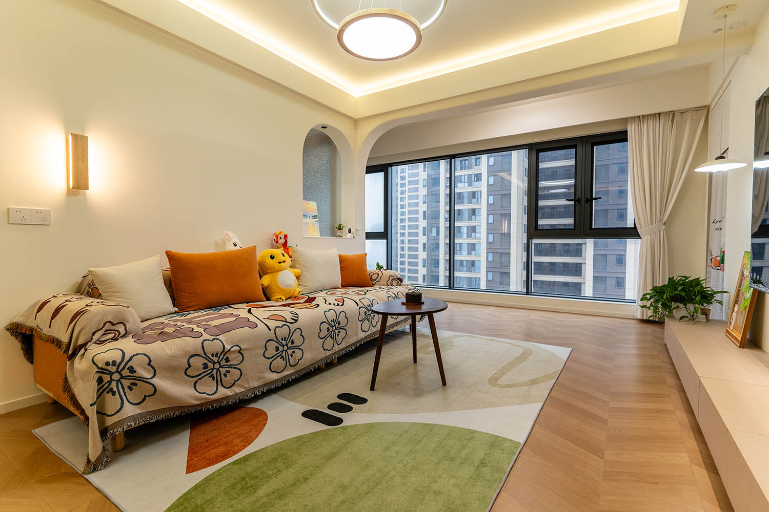 設(shè)計理念與空間基調(diào) 原木奶油風(fēng)以低飽和度色彩、自然材質(zhì)與柔和線條為核心,在建發(fā)央著100㎡的戶型中,設(shè)計師通過奶油色基底與原木元素的融合,營造出溫暖治愈的居家氛圍。整體風(fēng)格遵循“簡而不空”的原則,硬裝以簡約的幾何造型與流暢的動線為主,軟裝則強調(diào)材質(zhì)的天然感與舒適性,在實用性與美學(xué)之間找到完美平衡。 建發(fā)央著100㎡的原木奶油風(fēng),通過色彩、材質(zhì)與光影的巧妙平衡,將自然治愈感融入日常。既以開放式布局與智能收納滿足了現(xiàn)代生活的高效需求,又以弧形曲線與柔軟織物撫慰居者身心,真正詮釋了 “簡約中見細節(jié),溫柔中藏高級” 的居住理想。
