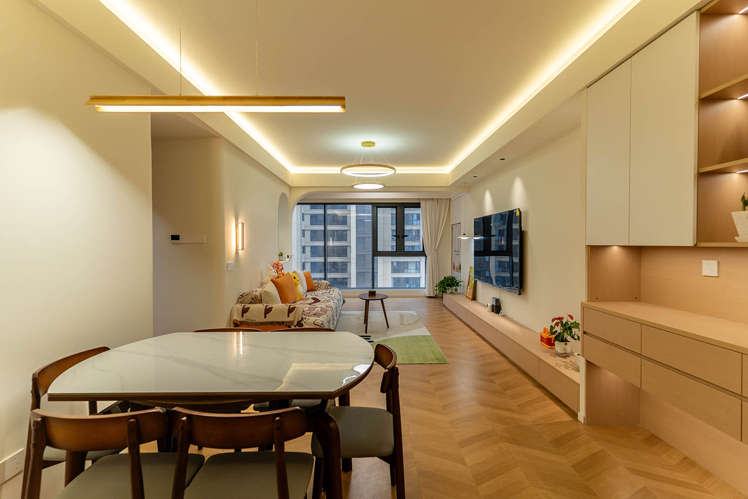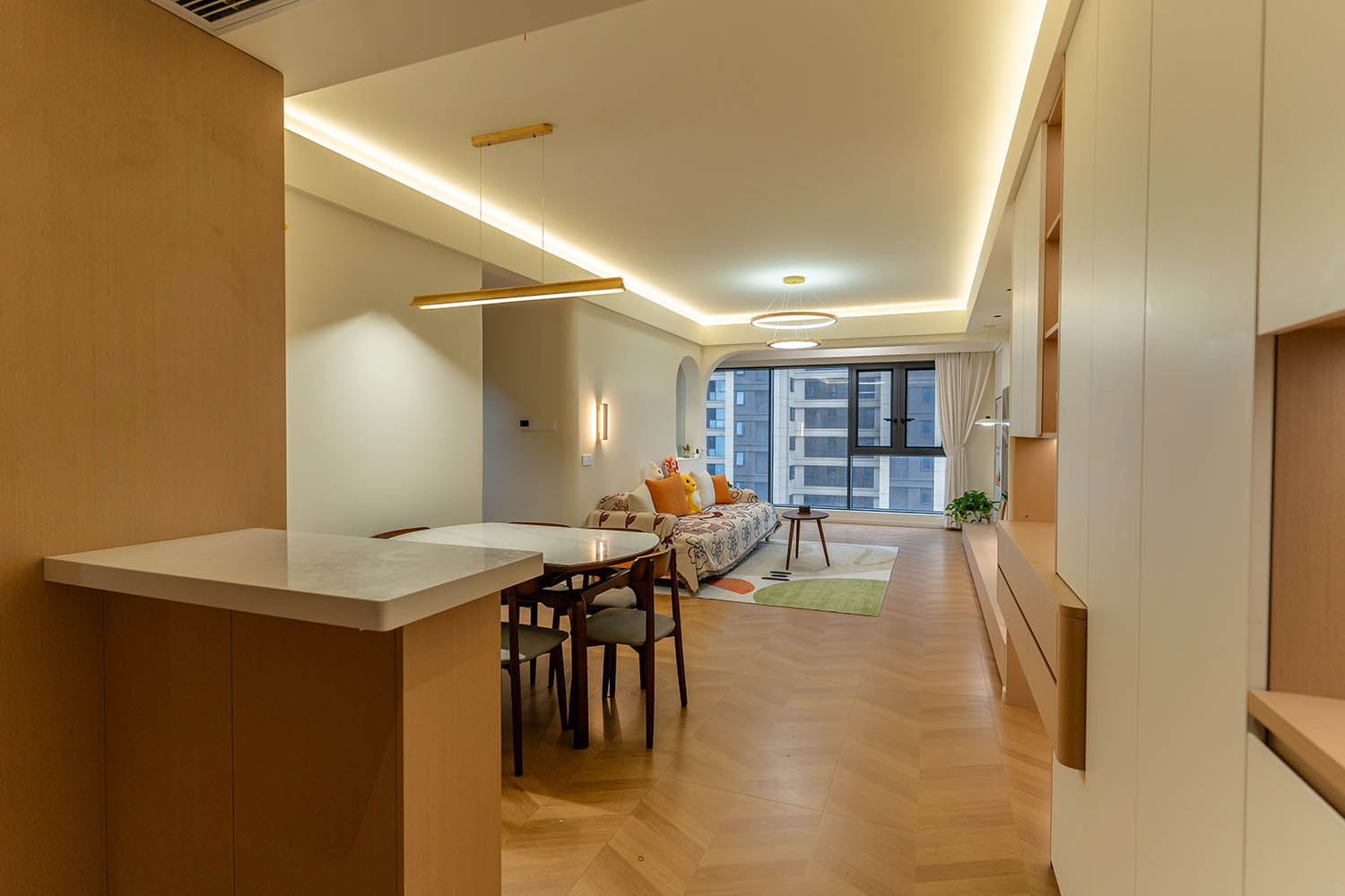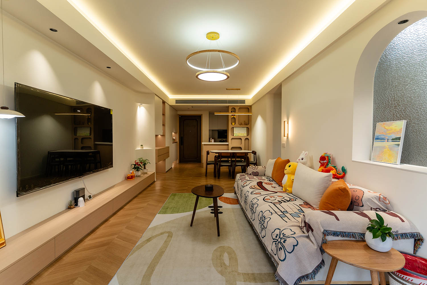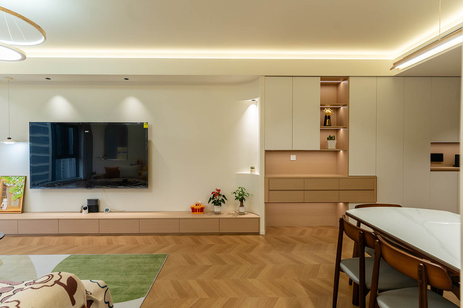 設(shè)計理念與空間基調(diào) 原木奶油風(fēng)以低飽和度色彩、自然材質(zhì)與柔和線條為核心,在建發(fā)央著100㎡的戶型中,設(shè)計師通過奶油色基底與原木元素的融合,營造出溫暖治愈的居家氛圍。整體風(fēng)格遵循“簡而不空”的原則,硬裝以簡約的幾何造型與流暢的動線為主,軟裝則強調(diào)材質(zhì)的天然感與舒適性,在實用性與美學(xué)之間找到完美平衡。 建發(fā)央著100㎡的原木奶油風(fēng),通過色彩、材質(zhì)與光影的巧妙平衡,將自然治愈感融入日常。既以開放式布局與智能收納滿足了現(xiàn)代生活的高效需求,又以弧形曲線與柔軟織物撫慰居者身心,真正詮釋了 “簡約中見細節(jié),溫柔中藏高級” 的居住理想。