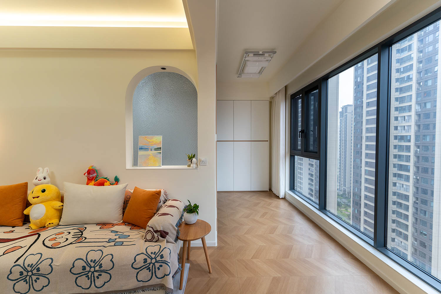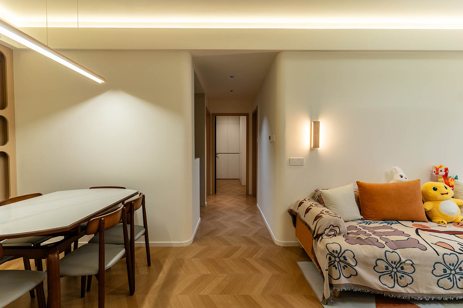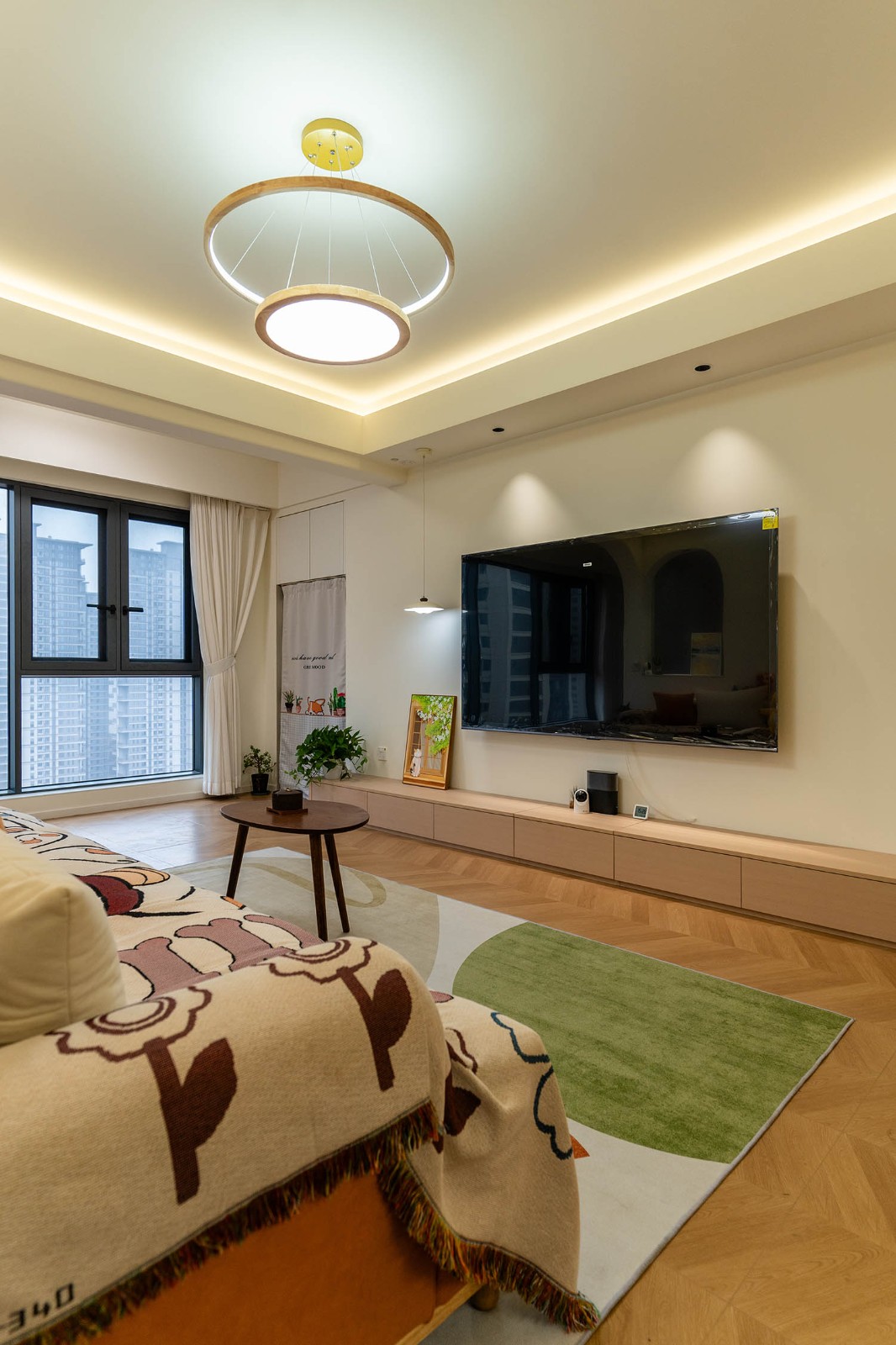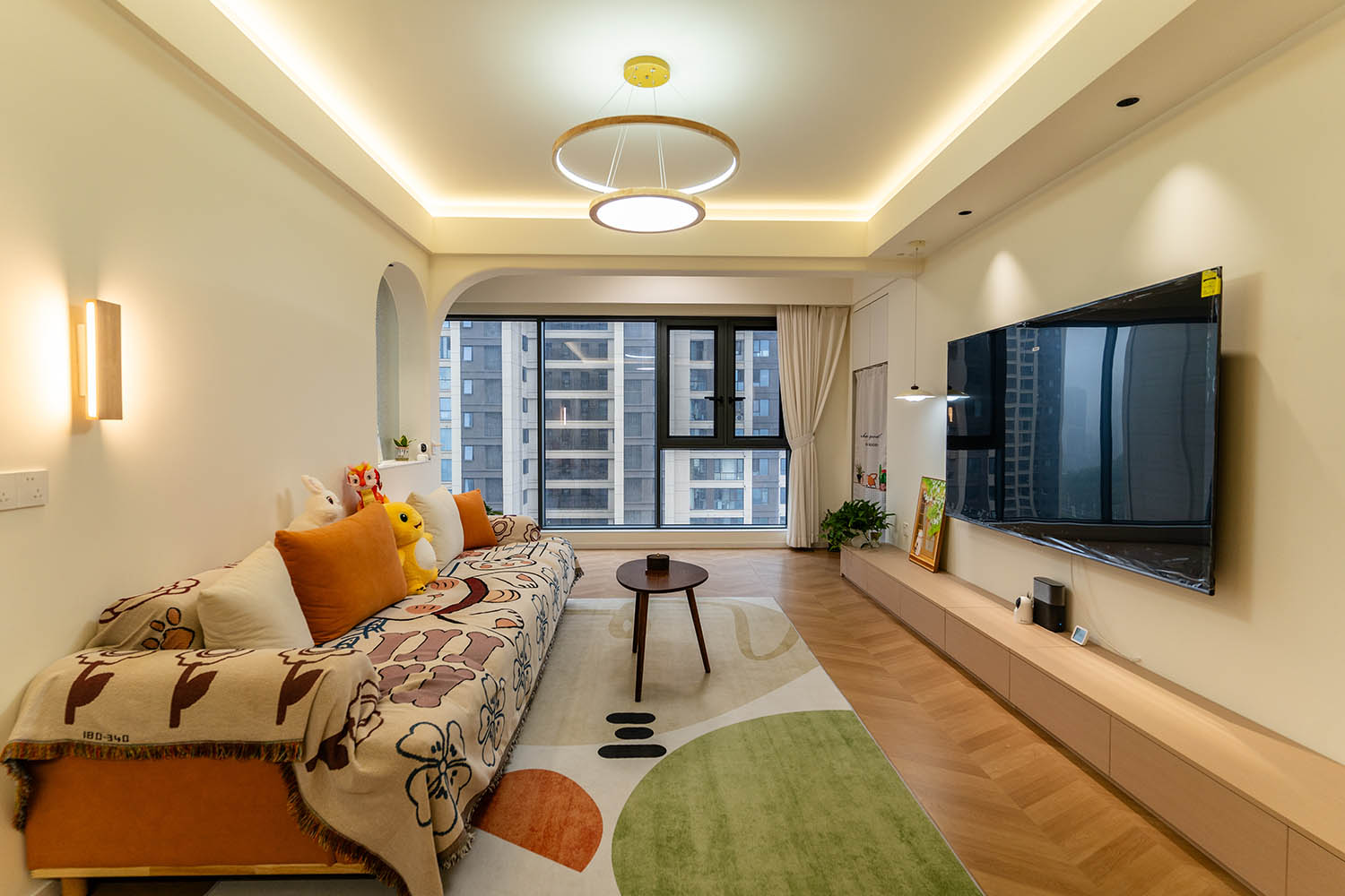 設(shè)計理念與空間基調(diào) 原木奶油風(fēng)以低飽和度色彩、自然材質(zhì)與柔和線條為核心,在建發(fā)央著100㎡的戶型中,設(shè)計師通過奶油色基底與原木元素的融合,營造出溫暖治愈的居家氛圍。整體風(fēng)格遵循“簡而不空”的原則,硬裝以簡約的幾何造型與流暢的動線為主,軟裝則強調(diào)材質(zhì)的天然感與舒適性,在實用性與美學(xué)之間找到完美平衡。 建發(fā)央著100㎡的原木奶油風(fēng),通過色彩、材質(zhì)與光影的巧妙平衡,將自然治愈感融入日常。既以開放式布局與智能收納滿足了現(xiàn)代生活的高效需求,又以弧形曲線與柔軟織物撫慰居者身心,真正詮釋了 “簡約中見細節(jié),溫柔中藏高級” 的居住理想。