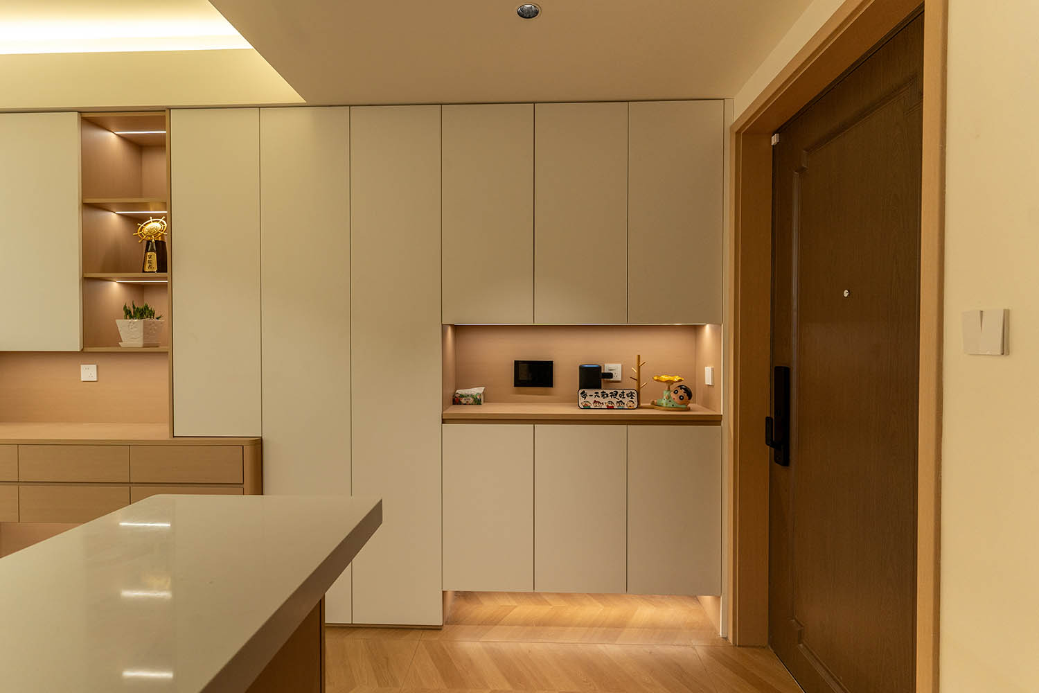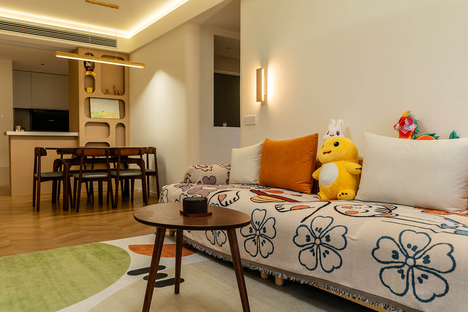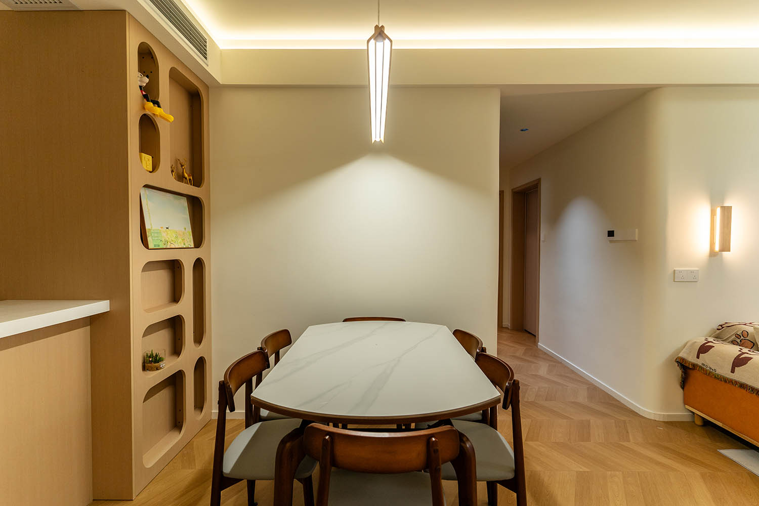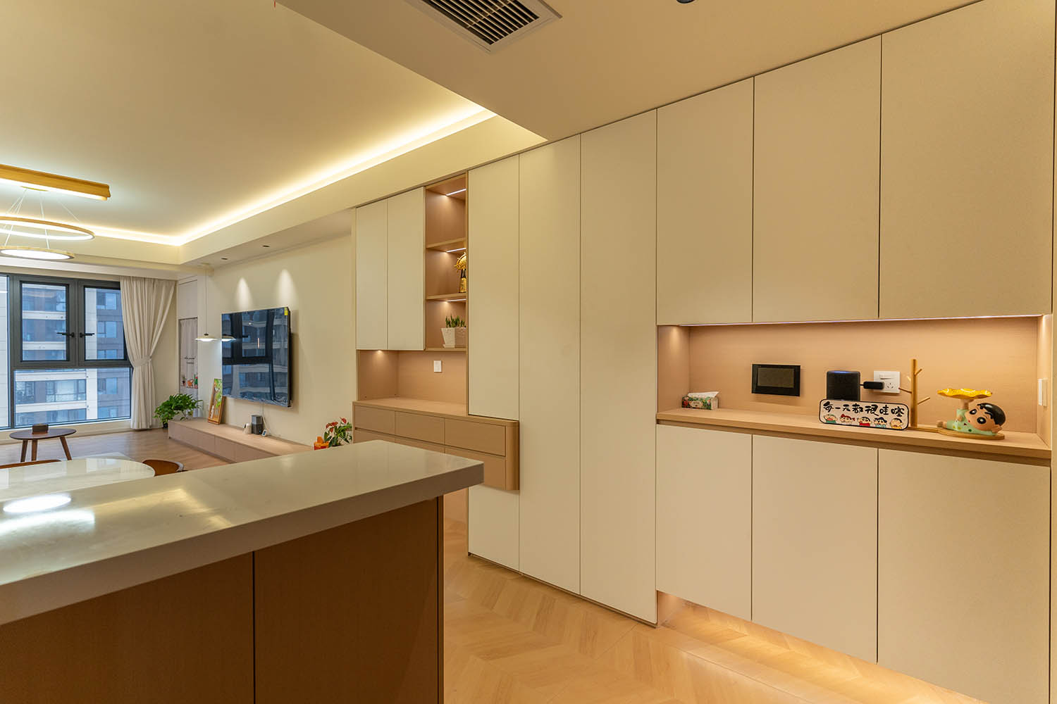 設(shè)計理念與空間基調(diào) 原木奶油風(fēng)以低飽和度色彩、自然材質(zhì)與柔和線條為核心,在建發(fā)央著100㎡的戶型中,設(shè)計師通過奶油色基底與原木元素的融合,營造出溫暖治愈的居家氛圍。整體風(fēng)格遵循“簡而不空”的原則,硬裝以簡約的幾何造型與流暢的動線為主,軟裝則強調(diào)材質(zhì)的天然感與舒適性,在實用性與美學(xué)之間找到完美平衡。 建發(fā)央著100㎡的原木奶油風(fēng),通過色彩、材質(zhì)與光影的巧妙平衡,將自然治愈感融入日常。既以開放式布局與智能收納滿足了現(xiàn)代生活的高效需求,又以弧形曲線與柔軟織物撫慰居者身心,真正詮釋了 “簡約中見細節(jié),溫柔中藏高級” 的居住理想。
