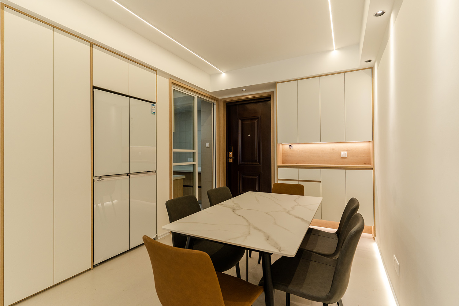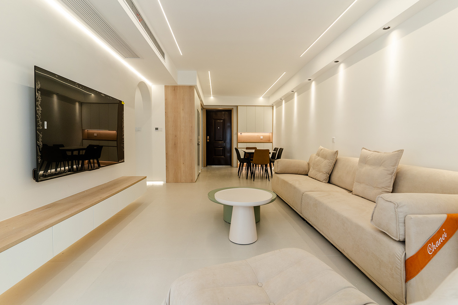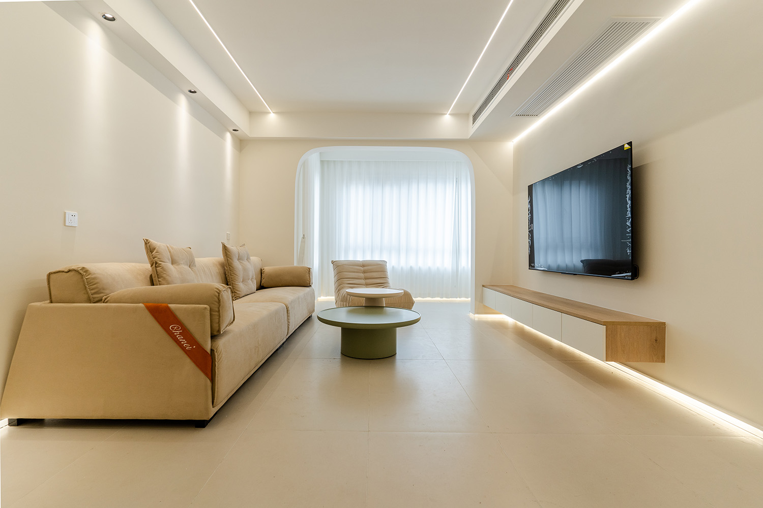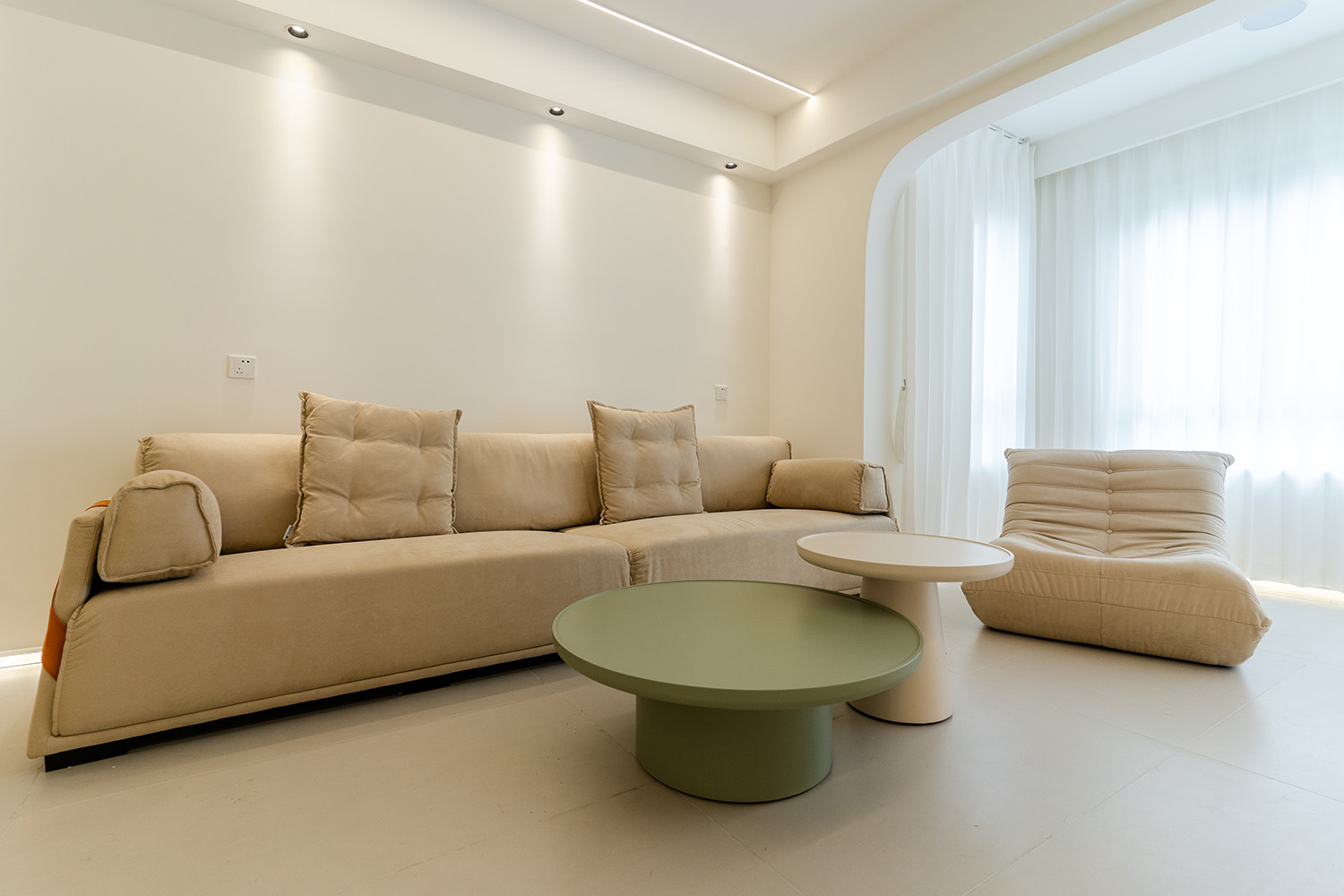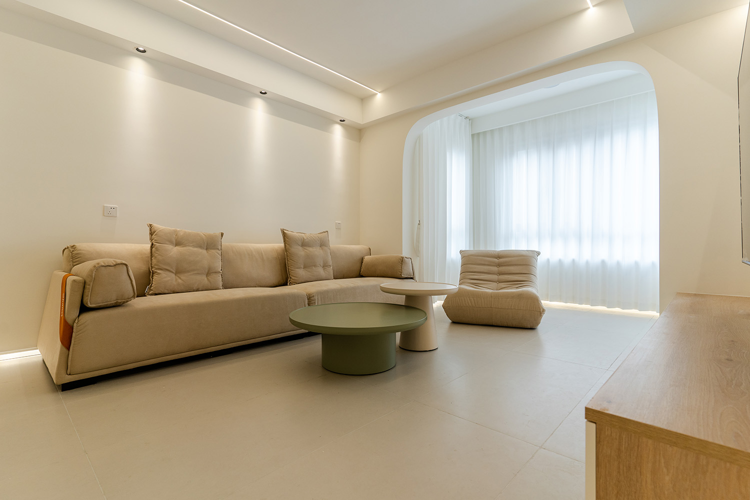 設(shè)計(jì)理念:溫柔包裹,簡約治愈 現(xiàn)代奶油風(fēng)的核心在于營造一種 "被溫柔包裹" 的治愈感。它摒棄了尖銳的棱角和冰冷的材質(zhì),通過微曲的線條、綿軟的質(zhì)感和溫暖的燈光,共同構(gòu)筑一個(gè)如云朵般輕盈、如奶茶般醇厚的空間氛圍。設(shè)計(jì)上追求 "簡于形,精于心" ,在滿足強(qiáng)大收納和流暢動(dòng)線的基礎(chǔ)上,于細(xì)節(jié)處彰顯品質(zhì),讓每一天的歸家都成為一場被溫柔以待的儀式。 株洲美墅灣106平的現(xiàn)代奶油風(fēng)裝修,通過柔和的色彩、圓潤的線條和精心的材質(zhì)搭配,成功塑造了一個(gè)溫馨、舒適、實(shí)用且高顏值的居家空間。它非常適合追求生活品質(zhì)、喜愛柔和寧靜家居氛圍的家庭。