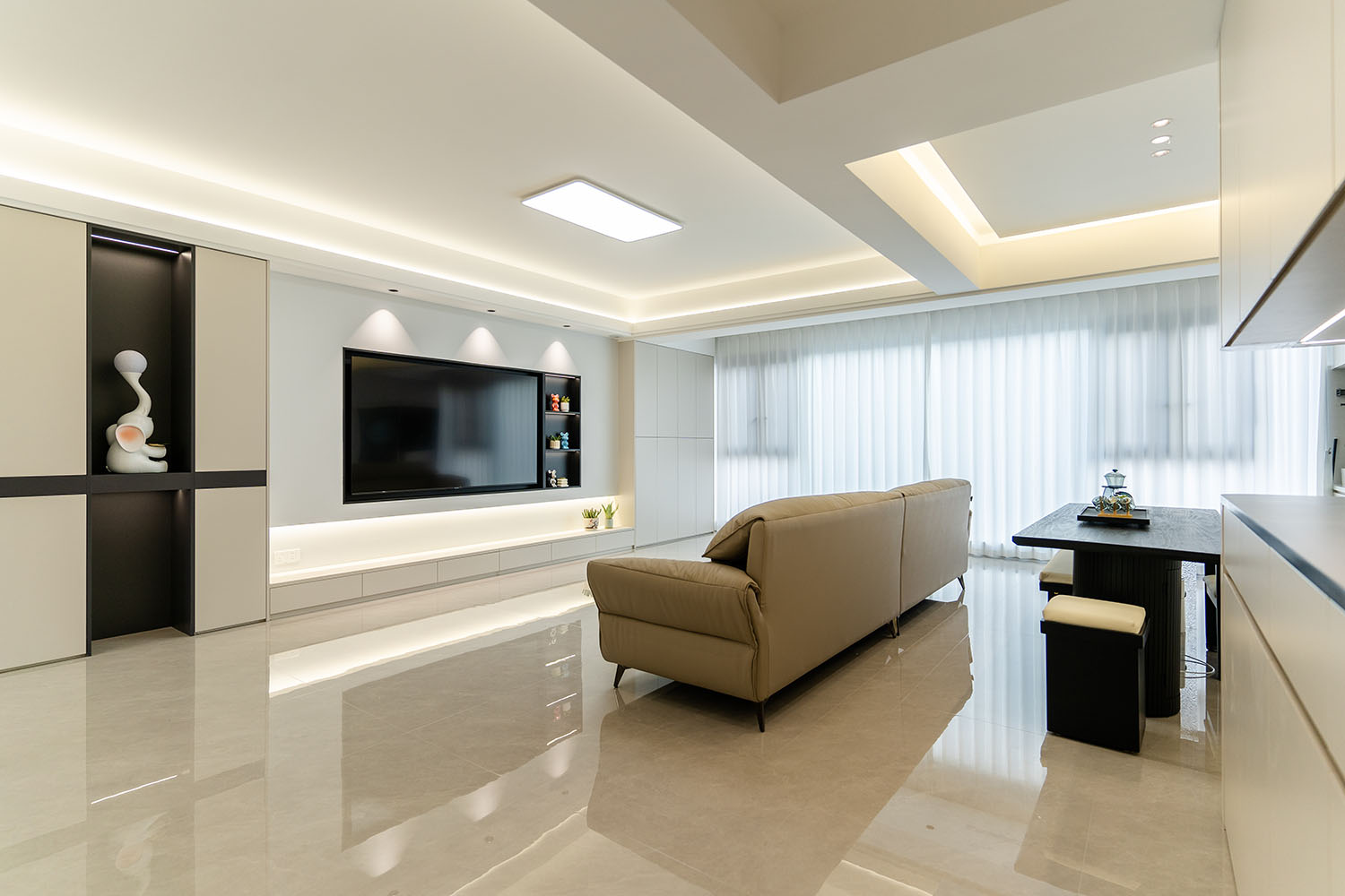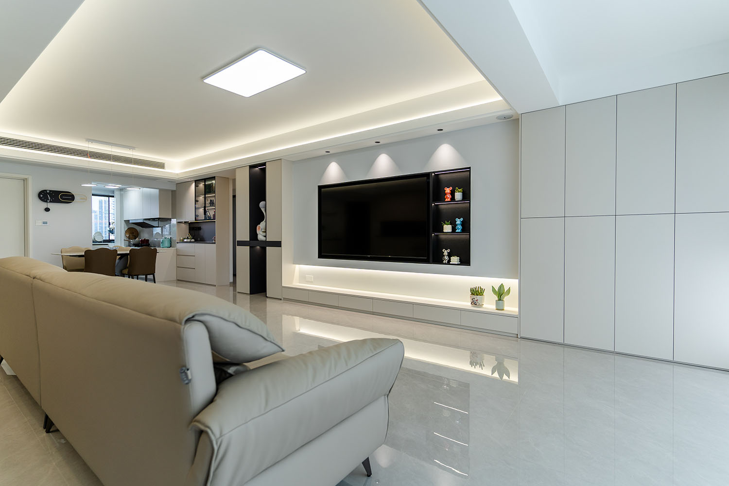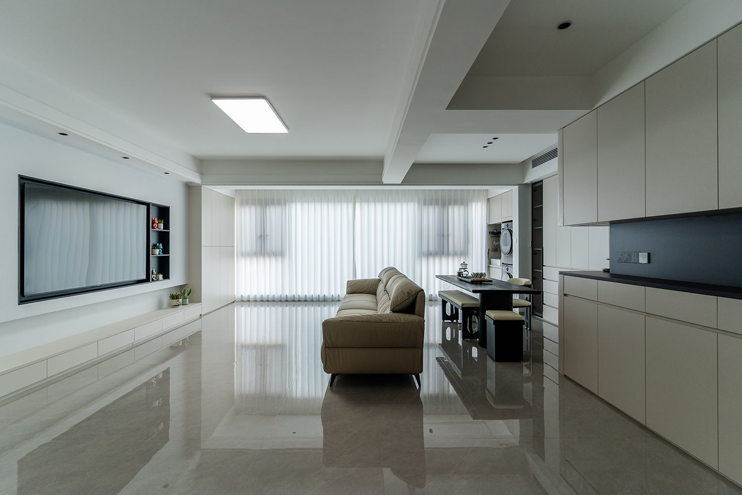 現(xiàn)代風(fēng)格的核心在于 “簡(jiǎn)于形,精于心” ,它強(qiáng)調(diào)功能至上,摒棄冗雜裝飾,通過線條、色彩和材質(zhì)的巧妙搭配,打造出理性且溫馨的居住空間。對(duì)于130平米的三居室,關(guān)鍵在于平衡開闊感與實(shí)用性。 現(xiàn)代風(fēng)格裝修的成功,關(guān)鍵在于對(duì)功能性的精準(zhǔn)把握、對(duì)材質(zhì)質(zhì)感的嚴(yán)格把控以及對(duì)空間色彩的理性規(guī)劃。在規(guī)劃時(shí),請(qǐng)務(wù)必注意: