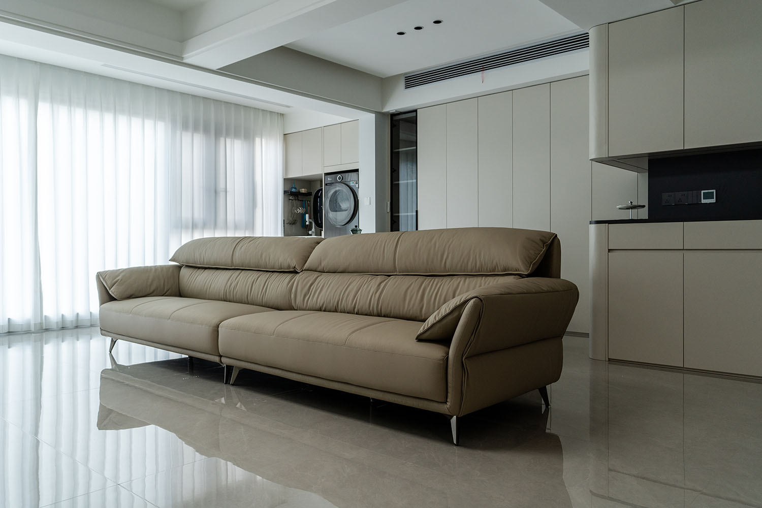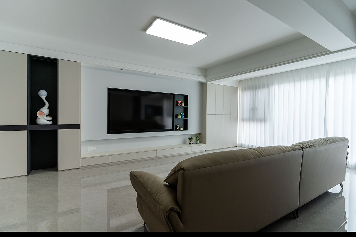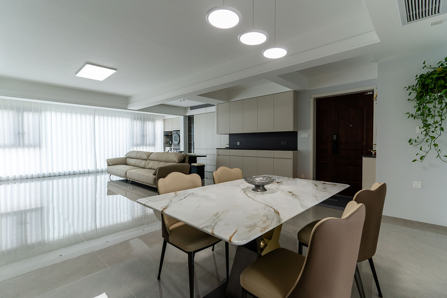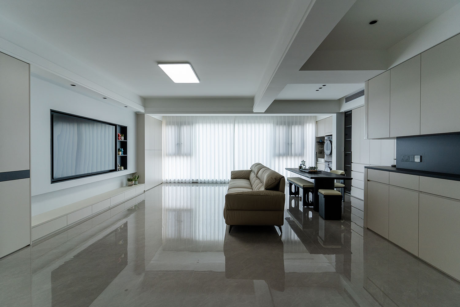 現(xiàn)代風(fēng)格的核心在于 “簡(jiǎn)于形,精于心” ,它強(qiáng)調(diào)功能至上,摒棄冗雜裝飾,通過線條、色彩和材質(zhì)的巧妙搭配,打造出理性且溫馨的居住空間。對(duì)于130平米的三居室,關(guān)鍵在于平衡開闊感與實(shí)用性。 現(xiàn)代風(fēng)格裝修的成功,關(guān)鍵在于對(duì)功能性的精準(zhǔn)把握、對(duì)材質(zhì)質(zhì)感的嚴(yán)格把控以及對(duì)空間色彩的理性規(guī)劃。在規(guī)劃時(shí),請(qǐng)務(wù)必注意: