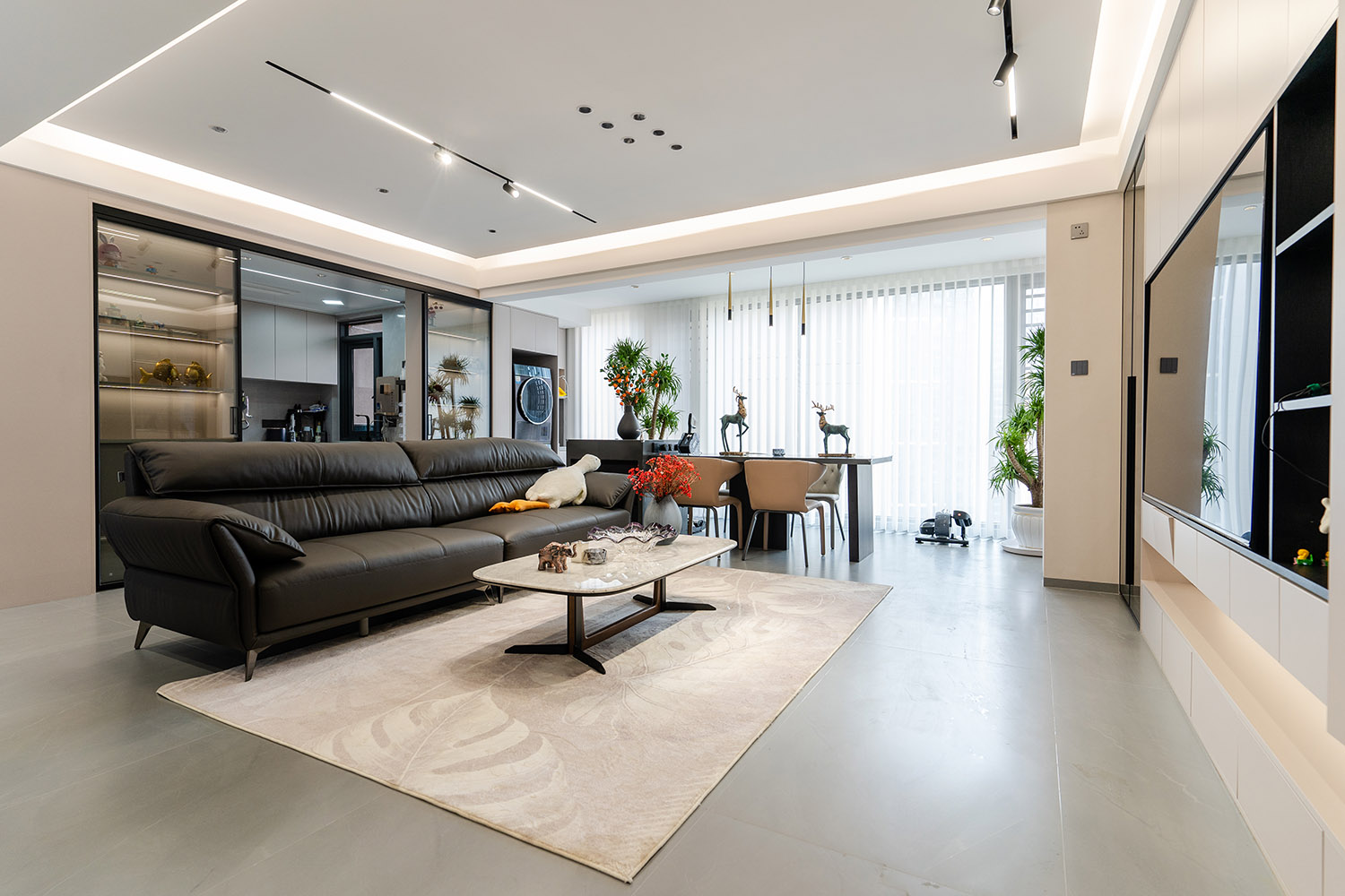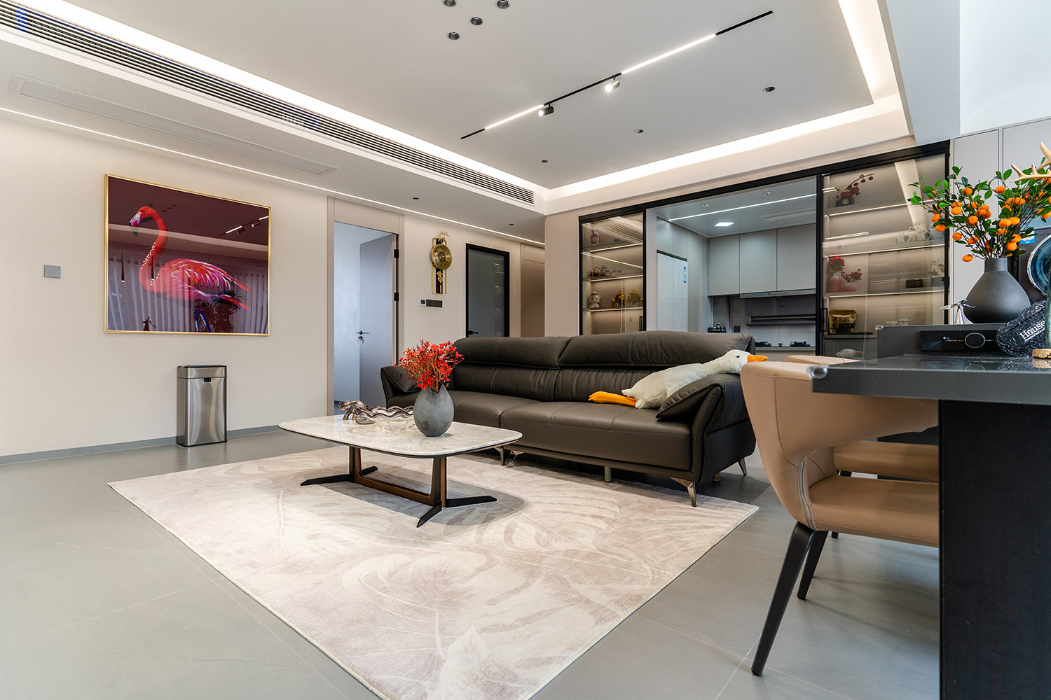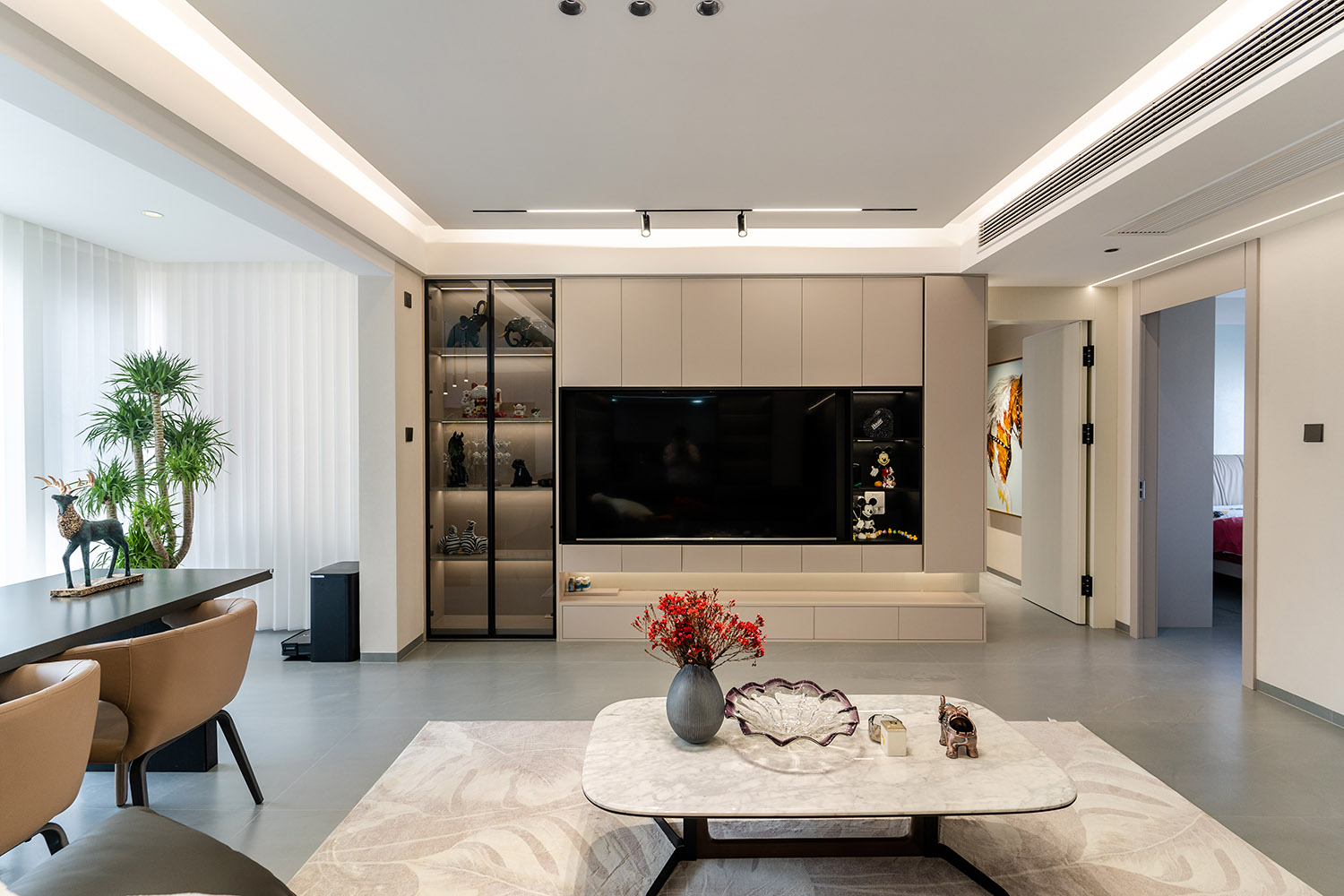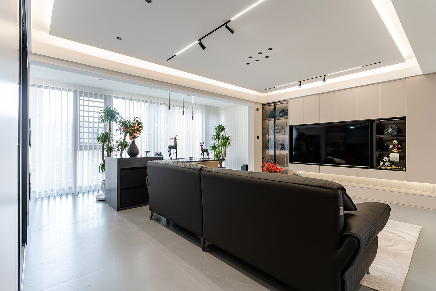 簡(jiǎn)構(gòu)生活,奢于本質(zhì) 本案的核心設(shè)計(jì)理念是 “功能顯性,裝飾隱性” 。設(shè)計(jì)追求一種“去設(shè)計(jì)師化”的純凈狀態(tài),將所有復(fù)雜的思考與工藝藏于簡(jiǎn)潔的表象之下。空間本身被視為一個(gè)功能容器與精神容器,通過極致的收納整合、無障礙的動(dòng)線規(guī)劃與柔和的感官體驗(yàn),讓居住者的生活本身成為空間最美的風(fēng)景。
