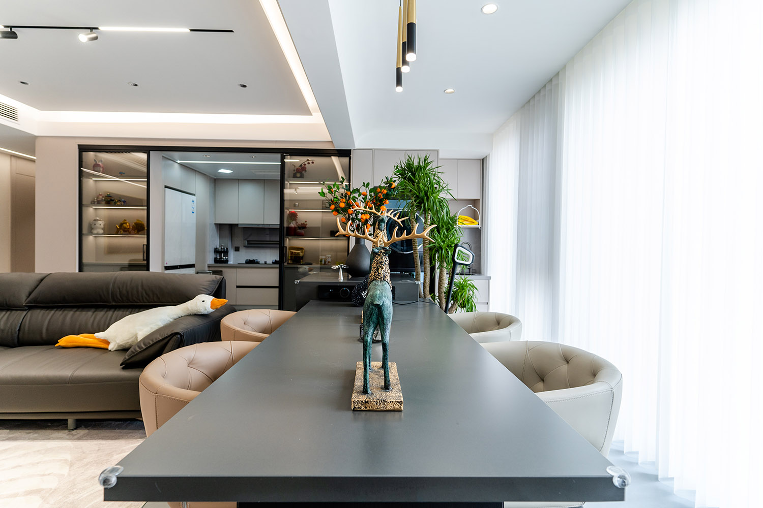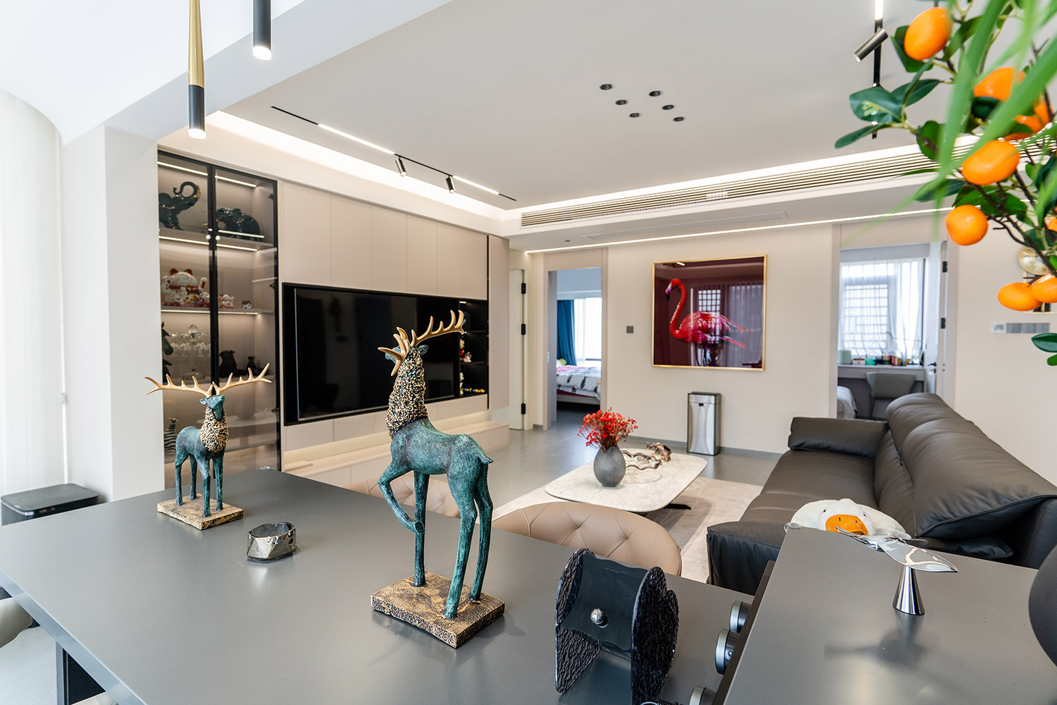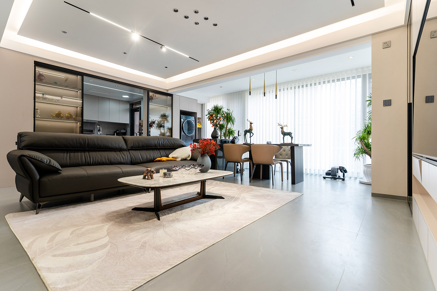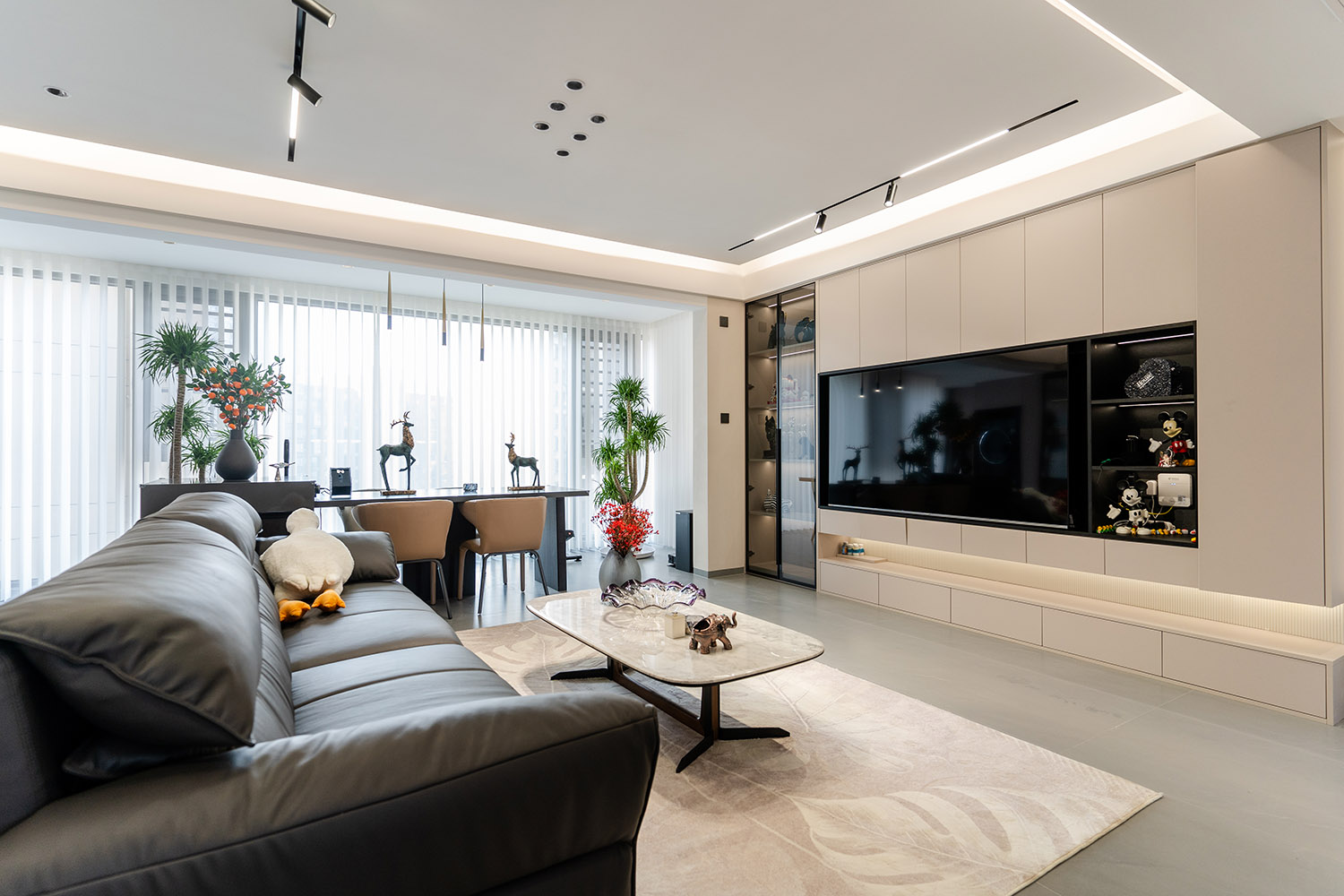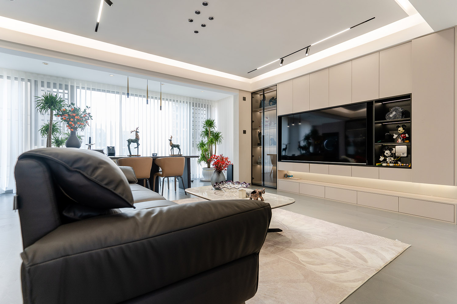 簡(jiǎn)構(gòu)生活,奢于本質(zhì) 本案的核心設(shè)計(jì)理念是 “功能顯性,裝飾隱性” 。設(shè)計(jì)追求一種“去設(shè)計(jì)師化”的純凈狀態(tài),將所有復(fù)雜的思考與工藝藏于簡(jiǎn)潔的表象之下。空間本身被視為一個(gè)功能容器與精神容器,通過極致的收納整合、無障礙的動(dòng)線規(guī)劃與柔和的感官體驗(yàn),讓居住者的生活本身成為空間最美的風(fēng)景。