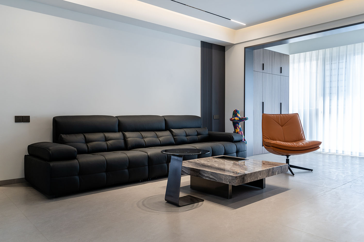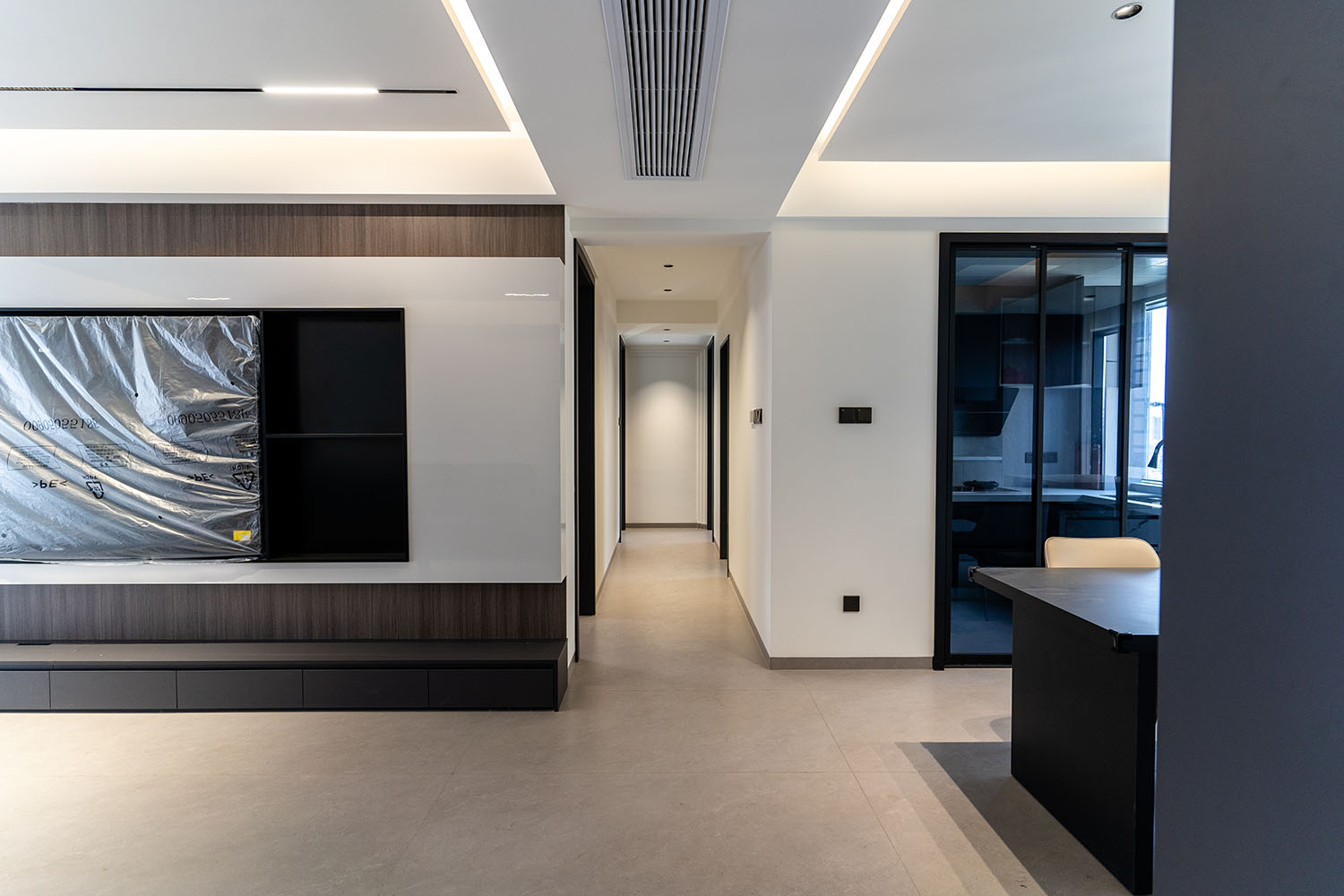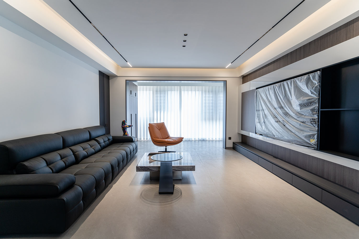設(shè)計理念:奢于細(xì)節(jié),簡于形式 本案的核心設(shè)計理念是 “低調(diào)的奢華” 。它追求的不是形式的炫耀,而是內(nèi)在品質(zhì)的極致呈現(xiàn)。設(shè)計通過對材質(zhì)本身的深刻理解、對光影的藝術(shù)化塑造以及對功能的無痕整合,在每一處細(xì)節(jié)中注入奢華感。最終,空間呈現(xiàn)出一種靜謐的力量感,讓居者在日常點滴中,都能感受到被頂級品質(zhì)包圍的從容與優(yōu)雅。 意式極簡風(fēng)格,是理性美學(xué)與奢適生活的完美統(tǒng)一。它剝離了多余的裝飾,通過精煉的線條、頂級的材質(zhì)與嚴(yán)謹(jǐn)?shù)谋壤瑯?gòu)筑一個兼具冷靜氣場與溫潤觸感的居住空間。本案以中海譽園140平方米的戶型為載體,深度解析如何在現(xiàn)代住宅中,將意式的優(yōu)雅基因與極簡的功能主義相融合,打造一個彰顯國際品味與生活質(zhì)感的精致居所。