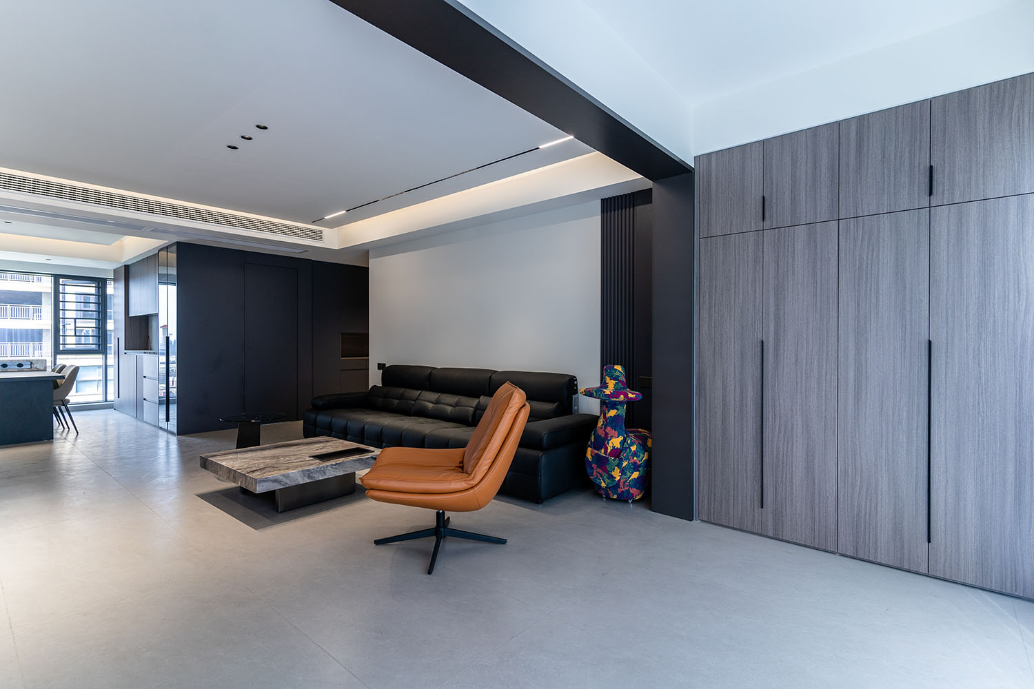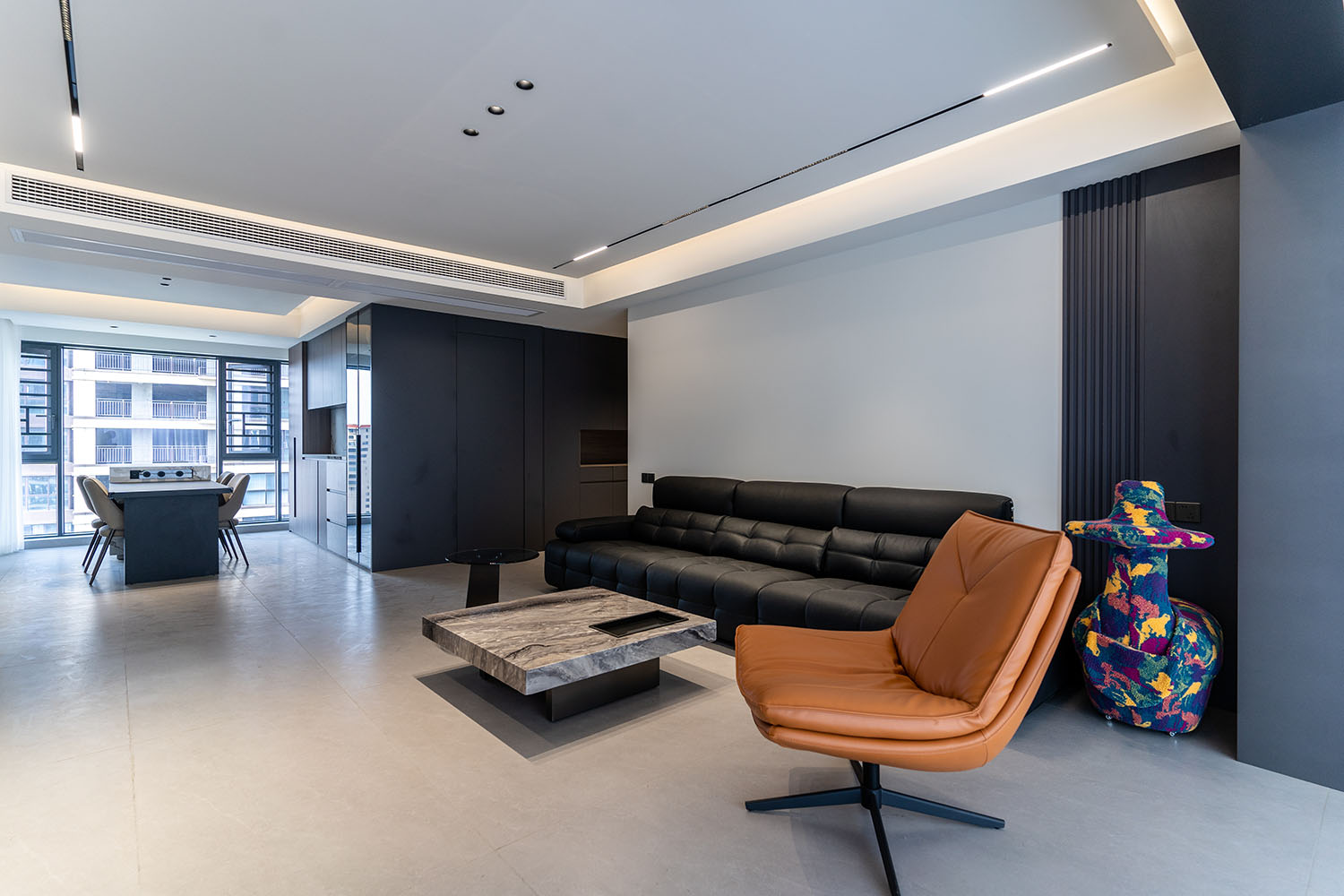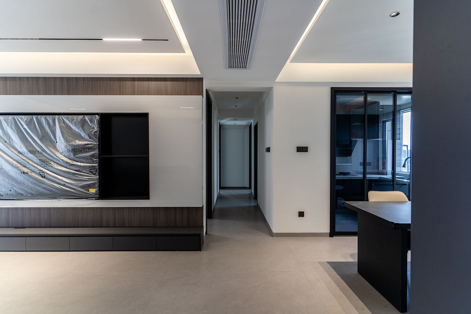 設(shè)計理念:奢于細(xì)節(jié),簡于形式 本案的核心設(shè)計理念是 “低調(diào)的奢華” 。它追求的不是形式的炫耀,而是內(nèi)在品質(zhì)的極致呈現(xiàn)。設(shè)計通過對材質(zhì)本身的深刻理解、對光影的藝術(shù)化塑造以及對功能的無痕整合,在每一處細(xì)節(jié)中注入奢華感。最終,空間呈現(xiàn)出一種靜謐的力量感,讓居者在日常點滴中,都能感受到被頂級品質(zhì)包圍的從容與優(yōu)雅。 意式極簡風(fēng)格,是理性美學(xué)與奢適生活的完美統(tǒng)一。它剝離了多余的裝飾,通過精煉的線條、頂級的材質(zhì)與嚴(yán)謹(jǐn)?shù)谋壤瑯?gòu)筑一個兼具冷靜氣場與溫潤觸感的居住空間。本案以中海譽園140平方米的戶型為載體,深度解析如何在現(xiàn)代住宅中,將意式的優(yōu)雅基因與極簡的功能主義相融合,打造一個彰顯國際品味與生活質(zhì)感的精致居所。