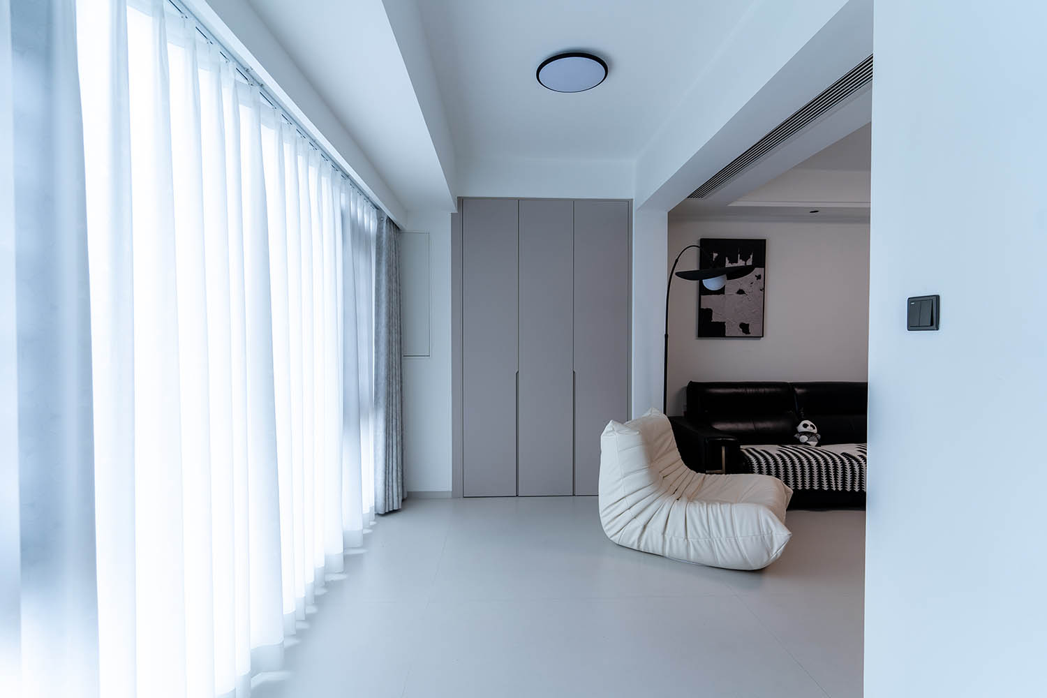 設(shè)計理念 本案以“現(xiàn)代極簡”為核心理念,強調(diào)“少即是多”的設(shè)計哲學(xué),通過干凈的線條、克制的色彩與高效的空間規(guī)劃,打造一個兼具功能性與美學(xué)價值的居住環(huán)境。設(shè)計注重光影互動、材質(zhì)對比與人性化細(xì)節(jié),滿足都市精英對簡約、舒適與品質(zhì)生活的追求。 本案通過極簡的視覺語言與高效的空間利用,實現(xiàn)“形式追隨功能”的設(shè)計本質(zhì),為居住者提供一個寧靜、有序且充滿現(xiàn)代美學(xué)的理想居所。