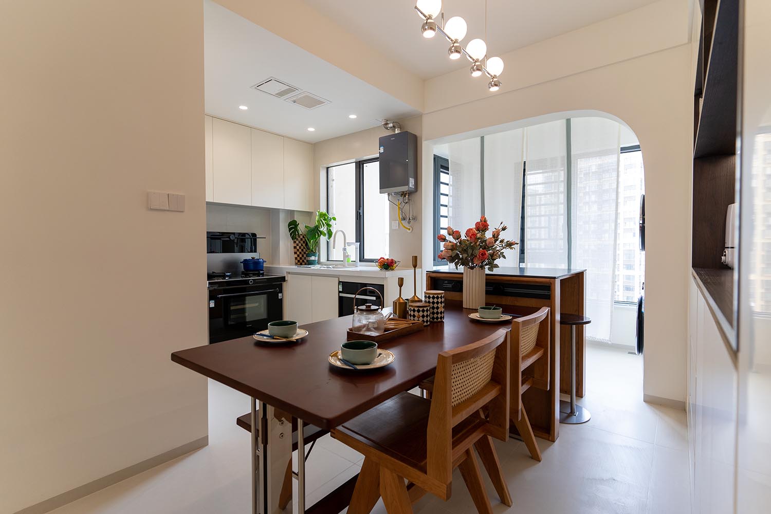 株洲金水灣115平奶油中古風(fēng)裝修實(shí)景