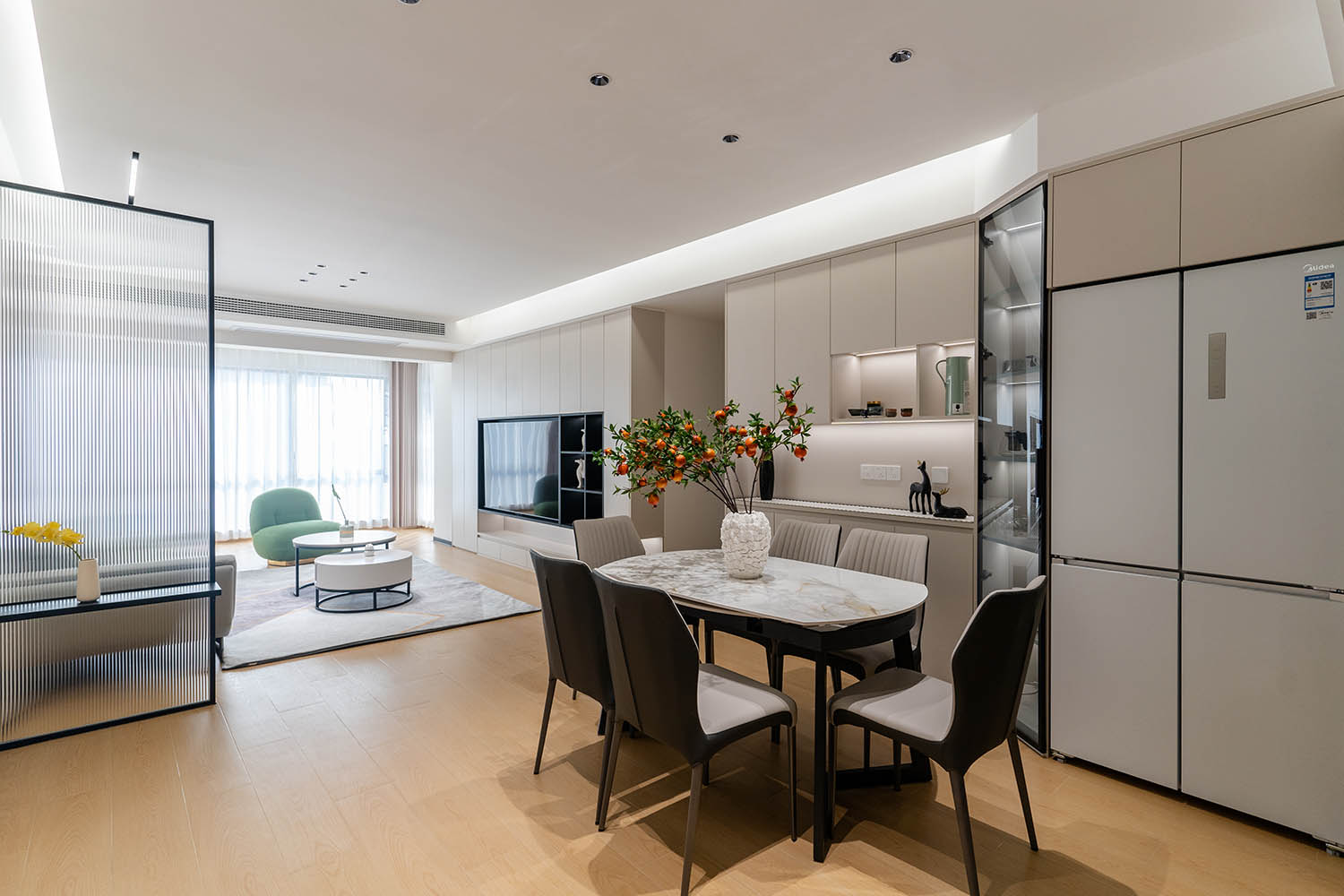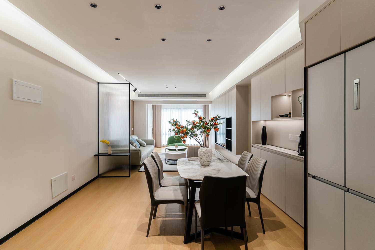 本案以“現(xiàn)代奶油風(fēng)”為基調(diào),融合柔和的曲線、溫暖的色調(diào)和極簡的布局,打造出一個(gè)輕盈通透、充滿治愈感的理想居所。設(shè)計(jì)師通過低飽和色彩、自然材質(zhì)與軟糯的家具搭配,讓空間既溫馨又不失高級(jí)感,完美契合年輕家庭對(duì)舒適與美學(xué)的雙重追求。
